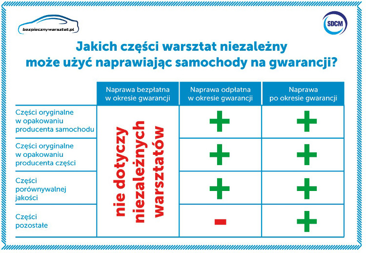 W samochodzie na gwarancji można stosować części nie tylko z logo producenta pojazdu, ale także znacznie tańsze części oferowane przez niezależny rynek.