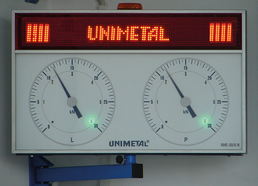 Prezentacja wyników pomiaru sił hamowania na tablicy z wyświetlaczami (przykład) – źródło: Unimetal