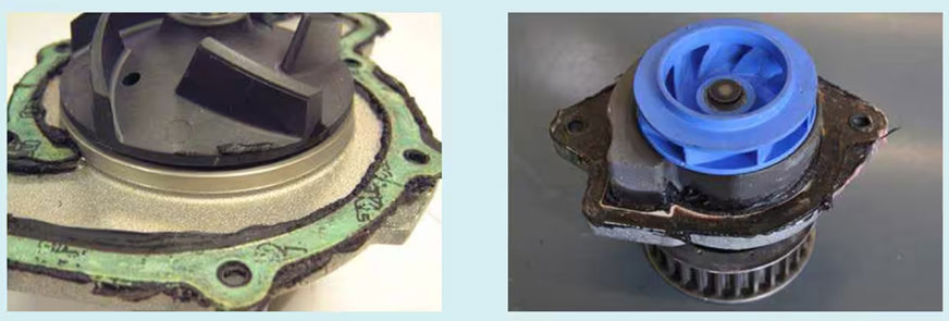 Winę za zanieczyszczenie płynu chłodniczego ponosi często przeciekająca uszczelka głowicy cylindra lub wewnętrzny wyciek z chłodzonego wodą układu EGR. Niepokojący wygląd płynu chłodniczego może być zatem sygnałem ostrzegawczym informującym o innych usterkach silnika. Bardzo często zdarza się, że po wymianie pompy cieczy chłodzącej mechanik decyduje się wyłącznie na uzupełnienie płynu chłodniczego. Należy w takiej sytuacji pamiętać, że do mieszania nadają się nieliczne płyny, co jest zawsze wyraźnie zaznaczone na opakowaniu. W pozostałych przypadkach „dolewki” należy wykonywać tym samym rodzajem płynu, którym zalany jest układ, albo – jeśli trudno określić rodzaj płynu – należy wymienić cały płyn.