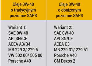 Oleje klasy SAE 0W-40 występują w dwóch wariantach (tabela 1) – jako oleje do samochodów bez filtrów cząstek stałych oraz jako oleje do samochodów z filtrami cząstek stałych. Ich zastosowanie ma charakter uniwersalny, jakkolwiek są to oleje przeznaczone do samochodów produkowanych w połowie ubiegłej dekady i starszych.