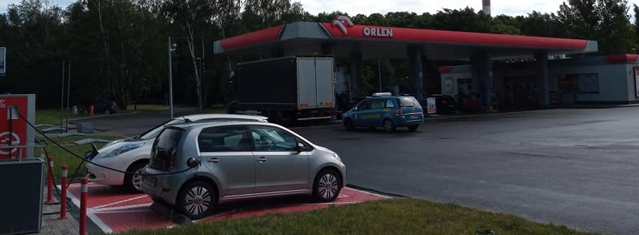 Punkt ładowania ma dwa stanowiska? W teorii tak, w praktyce dziś musieliśmy czekać, aż pierwszy samochód zakończy ładowanie, by rozpoczęło się ono u nas.