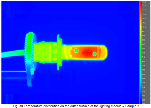 Ze względu na fakt, że parametry oświetleniowe diody w wysokiej temperaturze znacznie się pogarszają niezwykle istotne jest właściwe odprowadzanie ciepła. Gwarantuje to poprawnie skonstruowany radiator, wykonany z wysokiej jakości materiałów. Dlatego podczas badania retrofitów sprawdzono także rozkład temperatury na źródle światła oraz w reflektorze z zamontowanym retrofitem. Okazało się, że w wielu z badanych źródeł światła zastosowany radiator był niewystarczający lub system chłodzenia produktu był zaprojektowany niewłaściwie, co powodowało wzrost temperatury na powierzchni całej płytki i obudowy produktu. Efektem był spadek parametrów świetlnych (np. strumień świetlny, temperatura barwowa), a w skrajnym przypadku uszkodzenie diody.