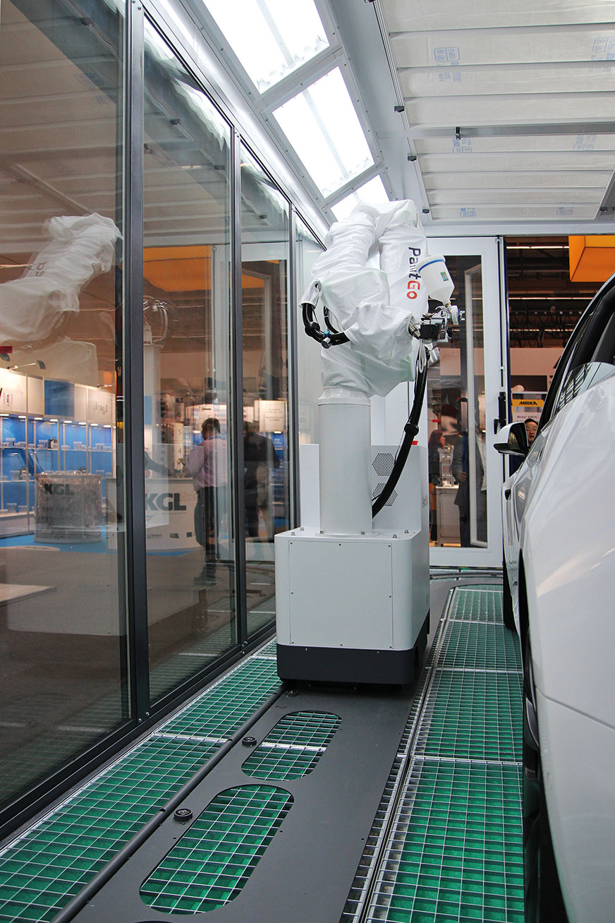 Robot nie potrafi jeszcze oklejać karoserii, ale przyuczony świetnie operuje pistoletem lakierniczym. I dokładnie taki pokaz urządziła polska firma, która od 1996 r. konsekwentnie współpracuje z producentami i wprowadza na rynek nowoczesne rozwiązania. Ten stały uczestnik targów we Frankfurcie tym razem zaskoczył prezentacją robota marki Paint GO.