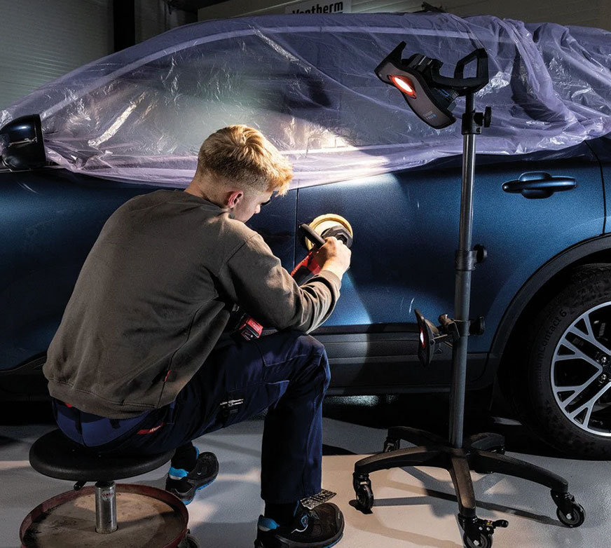 Warsztatom szczególnie polecane są modele Magnum MultiBattery – kompaktowe, mocne naświetlacze LED z łatwym montażem na statywie. To seria ultrawytrzymałych, bezprzewodowych naświetlaczy o niezwykle szerokich możliwościach adaptacyjnych. Każdy z nich jest kompatybilny z aż siedmioma akumulatorami 18 V wiodących marek, zapewniając elastyczność w ich doborze. Z kolei Profi Service Set Akku LED to profesjonalna lampa służąca do oświetlenia komory silnika, ale również do detailingu. Lampa jest zasilana akumulatorowo, co pozwala na oświetlenie strumieniem 500 lm, 1000 lm lub 2000 lm. Sprawdza się idealnie również jako doświetlenie kabiny pojazdu (zaciskamy lampę na słupkach bocznych) podczas naprawy, czyszczenia oraz detailingu. Wymienny akumulator ładowany jest za pomocą złącza C. Także model Mustang LED został zaprojektowany do pracy w warsztatach samochodowych, lakierniczych i detailingowych.