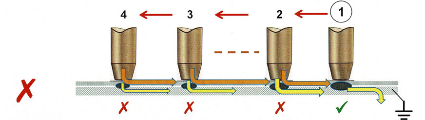 Zgrzewanie jednostronne nie jest zalecane. W przypadku stosowania tej metody należy pamiętać, że konieczne jest przestrzeganie kolejności etapów wykonywania zgrzeiny (Gys Academy – gys.pl)