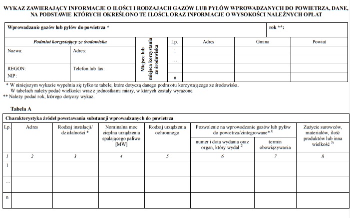 WAŻNE: Nie wnosi się opłat z tytułu tych rodzajów korzystania ze środowiska, których roczna wysokość nie przekracza 800 zł. W przypadku gdy roczna wysokość opłaty z tytułu każdego z rodzajów korzystania ze środowiska nie przekracza 100 zł, nie przedkłada się także wykazów i informacji, o których tu mowa.