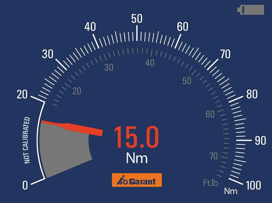 Nawet najlepszy klucz nie wystarczy. Dopiero komplet, składający się np. z sześciu narzędzi, oferuje zakres pomiarowy od 12 Nm do 400 Nm, co sprawia, że są idealne do różnych zastosowań przy naprawie maszyn i pojazdów. Tu zakres nieskalibrowany (wartość liczbowa jest czerwona) dla elektronicznego klucza dynamometrycznego z cyfrowym wskaźnikiem, którego maksymalny moment obrotowy jest wysoki – to 340 Nm