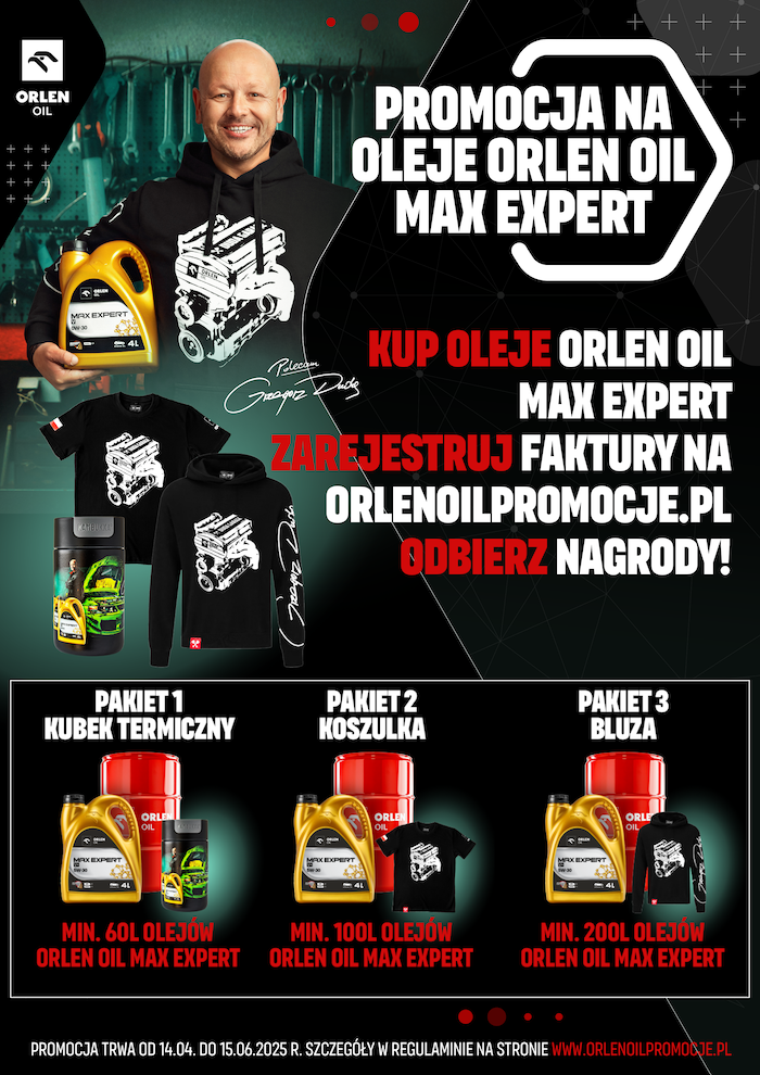 Promocja dotyczy produktów ORLEN OIL - Max Expert. Zasady są bardzo proste - wystarczy zarejestrować zakupowe faktury. Każdy uczestnik podczas rejestracji może zgłosić kilka faktur jednocześnie, a także odebrać maksymalnie trzy nagrody. Chodzi oczywiście o zakupy u dystrybutorów ORLEN OIL, a w przypadku hurtowni także bezpośrednio w ORLEN OIL.