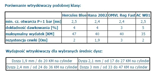 - czas otwarcia [2.5 ms ], 1 bar, 12 V.