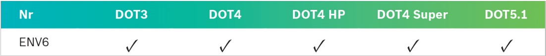 Najważniejszą zaletą płynu ENV6 jest możliwość zastąpienia wszystkich płynów hamulcowych podanych w tabeli poniżej.