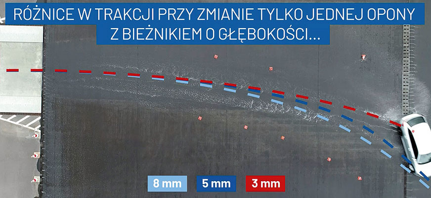 Różnica w bezpieczeństwie, zachowaniu samochodu, hamowaniu i przyczepności w przypadku innej głębokości bieżnika opon na tej samej osi jest ogromna. Zmniejsza się kontrola kierowcy nad samochodem i żadne zaawansowane systemy nie poradzą sobie z tym problemem. Pokazują to testy na torze, wykonane w sierpniu br. (https://oponymajamoc.pl/prawidlowe-cisnienie/).