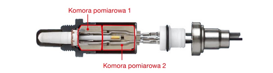W drugiej komorze ustalana jest zawartość NOx w spalinach. W tym celu pozostały tlenek azotu NOx poddawany jest redukcji do azotu i tlenu przez materiał katalityczny elektrody platynowo-rodowej. Powstały tlen jest następnie wypompowywany z komory pomiarowej przez tą elektrodę. Umożliwia to przepływ prądu przez elektrodę, który jest proporcjonalny do stężenia tlenku azotu NOx w spalinach. Ten z kolei służy do wyliczania, czy katalizator gromadzący NOx musi zostać poddany regeneracji, jaka powinna być dawka wtryskiwanego AdBlue® oraz do ustalania, czy układ selektywnej redukcji katalitycznej SCR pracuje poprawnie.