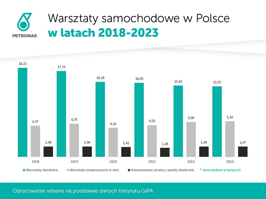 W 2023 roku w Polsce, według danych Instytutu GiPA, funkcjonowało 22,1 tysiąca serwisów samochodowych, co oznacza, że ich łączna liczba od 2017 roku zmalała o 11% - takie informacje podaje Petronas. Co to oznacza, jakie mogą być przyczyny tej sytuacji i jakich należy spodziewać się skuktów?