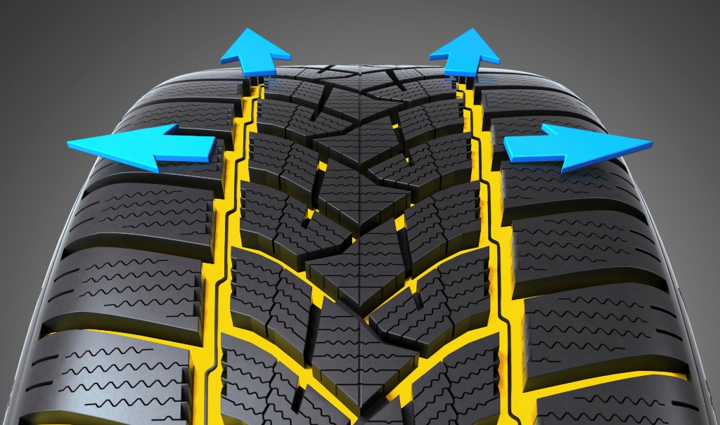 - 88% miłośników samochodów jako ważną właściwość opony uważa „doskonałe zachowanie w zakrętach na mokrych drogach". Opona Winter Sport 5 SUV oferuje najwyższą przyczepność boczną na śliskich nawierzchniach dzięki zakrzywionym lamelom w centralnej części bieżnika, które są teraz równolegle do krawędzi klocków, co poprawia przyczepność.
