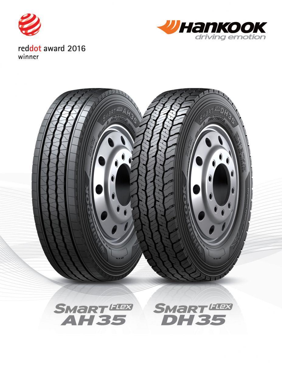 Dzięki SmartFlex AH35 i SmartFlex DH35 operatorzy flotowi i firmy przewozowe mogą czerpać korzyści z oszczędności paliwa, wysokich przebiegów i świetnych właściwości trakcyjnych tych całorocznych opon na oś prowadzącą i napędową. Istnieje również możliwość stosowania SmartFlex AH35 na wszystkich osiach. Zostało to docenione w ramach Red Dot Award. Opona stanowi najnowszy dodatek Hankook do linii opon SmartFlex. Podczas gdy SmartFlex AH31 i SmartFlex DH31 przeznaczone są przede wszystkim do większych rozmiarów obręczy, np. 22,5 cala, SmartFlex AH35 – wraz z siostrzaną oponą na oś napędową SmartFlex DH35 – są odpowiednie do mniejszych rozmiarów 17,5/19,5 cala.