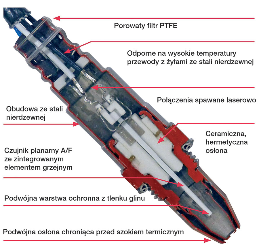 Do najczęstszych przyczyn usterek sond lambda zalicza się zanieczyszczenie czujnika, szok termiczny oraz uszkodzenia mechaniczne. Zanieczyszczenie czujnika to proces, który przebiega stopniowo. Cząsteczki spalin osadzają się na elemencie pomiarowym, co powoduje spowolnienie reakcji sondy i jej nieprawidłowe funkcjonowanie. Ostatecznie sonda pracuje zbyt wolno, by jej stan został wykryty przez elektroniczny moduł sterujący pracą silnika (ECU) – wtedy zapala się kontrolka sygnalizująca usterkę silnika.