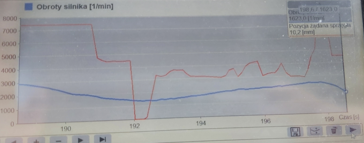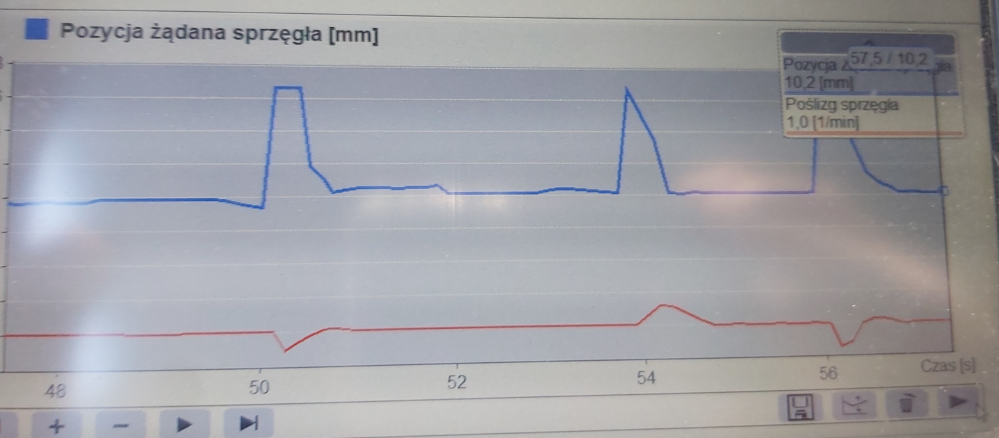 W tym przypadku mechatronika nie wie w jakim zakresie skoku łożyska oporowego (CSC) ma pracować sprzęgło, gdzie jest punkt załączania sprzęgła oraz jaka jest jego charakterystyka. Dobrze obrazuje to poniższy przebieg czasowy: brak offsetu w zakresie pracy łożyska oporowego.