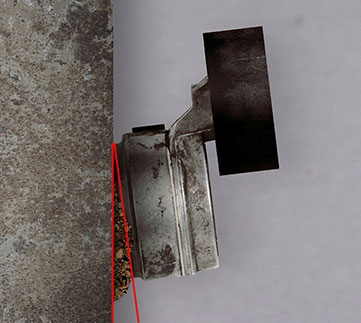 Przyczyna: uszkodzona lub niewspółpłaszczyznowo osadzona podstawa napinacza, niewłaściwy montaż napinacza lub korozja / zanieczyszczenia pomiędzy podstawą napinacza a powierzchnią montażową.