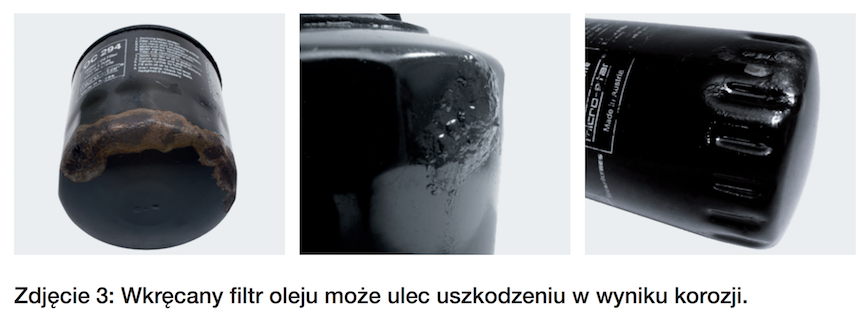 Nieprawidłowy montaż może być przyczyną uszkodzeń wkręcanych filtrów oleju (OC) ze względu na korozję, a w konsekwencji powodować wycieki oleju.