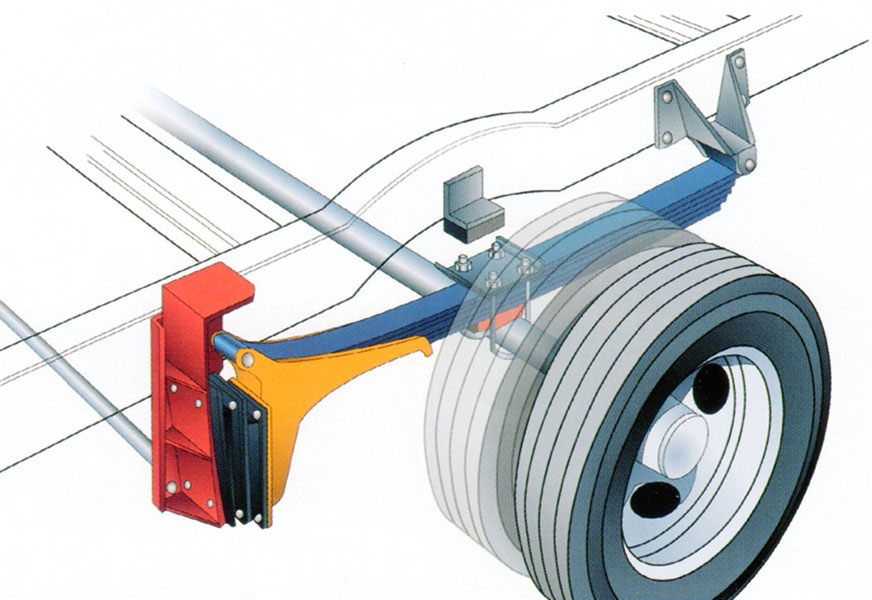 rys. 10. Zawieszenie mechaniczne (resory piórowe podłużne) z gumową poduszką stosowane w mniejszych autobusach (źródło: MORryde)