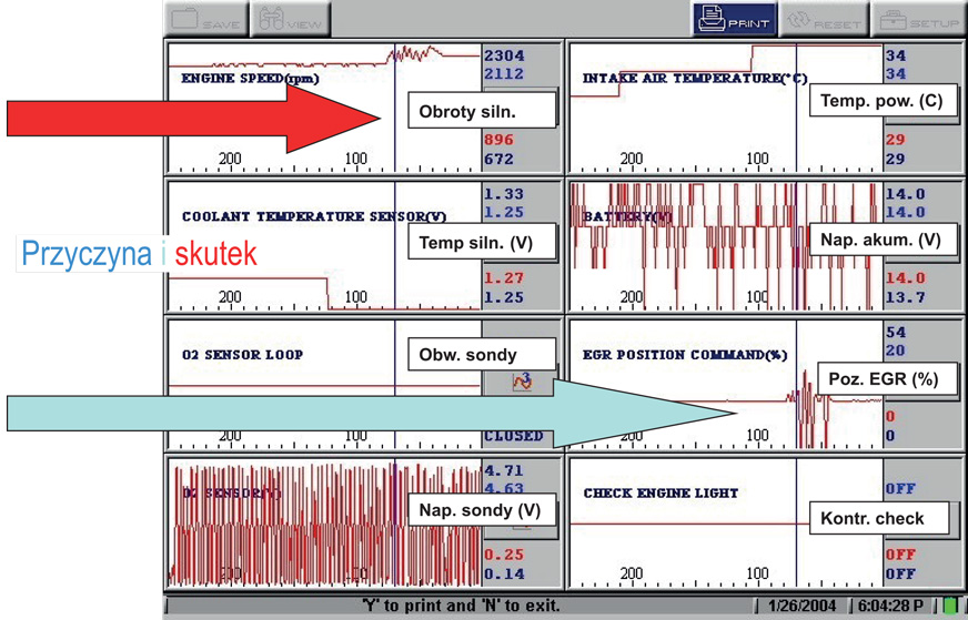 Bardzo przydatną funkcją testerów jest analiza graficzna parametrów bieżących, pozwala ona na diagnozowanie usterek chwilowych lub usterek bez kodów błędów, a także automatyczne wykrywanie usterki w czasie próby drogowej