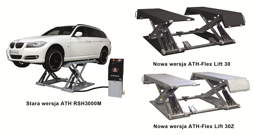 - Starsze wersje były dedykowane do montażu na stałe (ATH RSH3000) lub w wersji mobilnej (ATH RSH3000M), nowe wersje podnośników ATH-Flex Lift 30(Z) można montować na stałe lub używać jako podnośnika mobilnego w zależności od preferencji